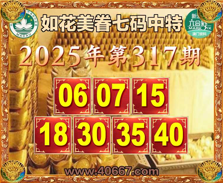 317期:【如花美眷】  ♣️七码中特 ♣️【06.07.15.18.30.35.40】开:18准上榜高手