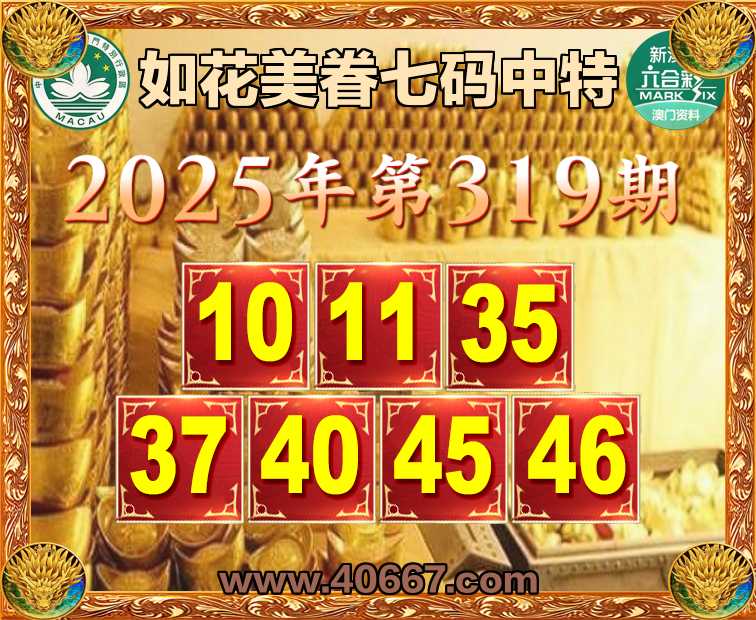319期:【如花美眷】  ♣️七码中特 ♣️【10.11.35.37.40.45.46】开:45准上榜高手