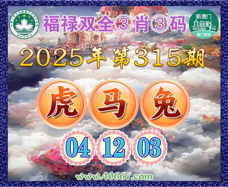 315期:《福禄双全》 🎆③肖③码🎆【马兔】【04.12.03】开:虎04