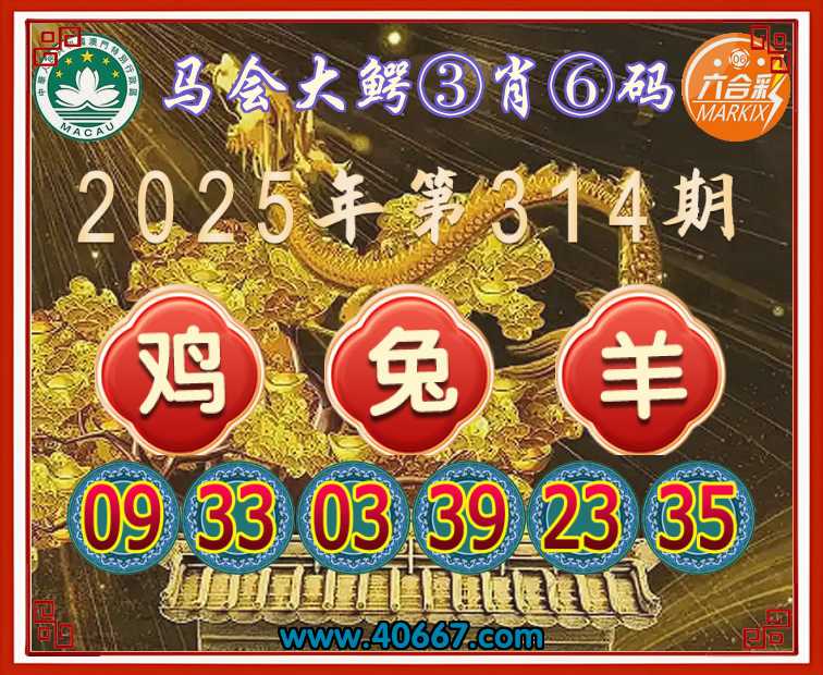 314期:『马会大鳄』 🍧③肖⑥码🍧【鸡兔】开:羊23