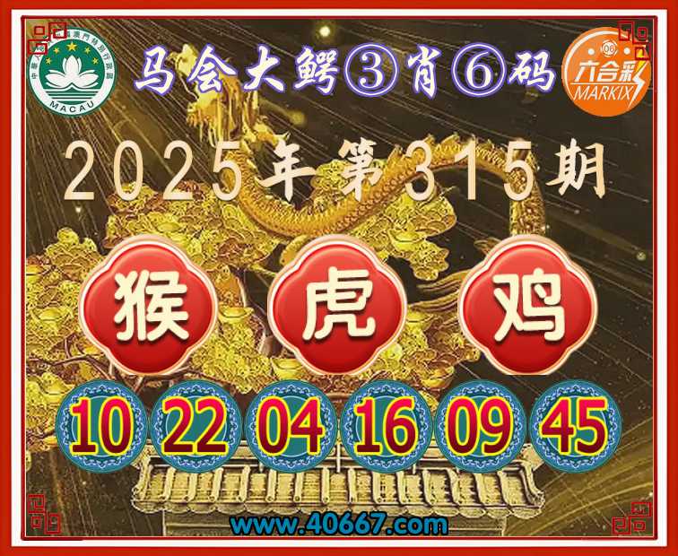 315期:『马会大鳄』 🍧③肖⑥码🍧【猴鸡】开:虎04