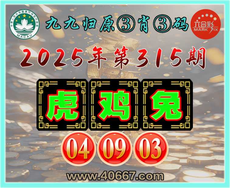 315期:〖九九归原〗 🎯③肖③码🎯【鸡兔】【04.09.03】开:虎04