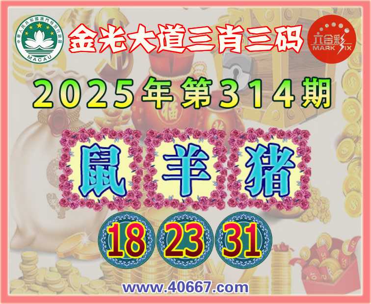 314期:『金光大道』 🥉三肖三码🥉【鼠猪】【18.23.31】开:羊23