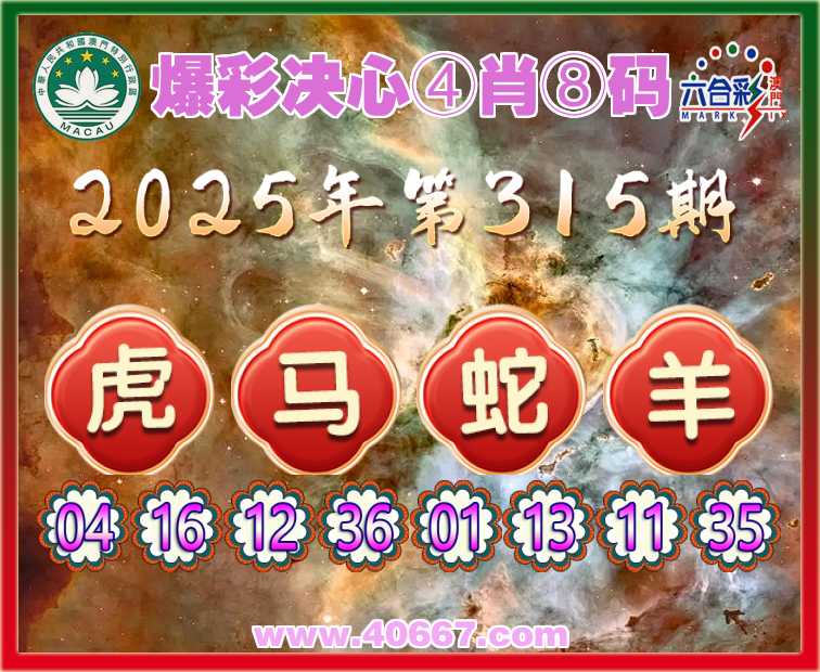 315期:〖爆彩决心〗 ☺️④肖⑧码☺️【马蛇羊】开:虎04