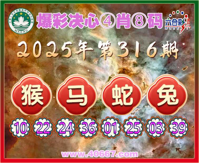 316期:〖爆彩决心〗 ☺️④肖⑧码☺️【猴蛇兔】开:马24