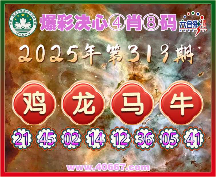319期:〖爆彩决心〗 ☺️④肖⑧码☺️【龙马牛】开:鸡45