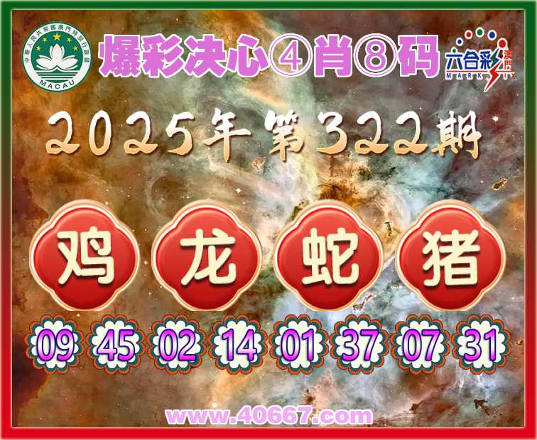 322期:〖爆彩决心〗 ☺️④肖⑧码☺️【鸡龙蛇猪】开:00准