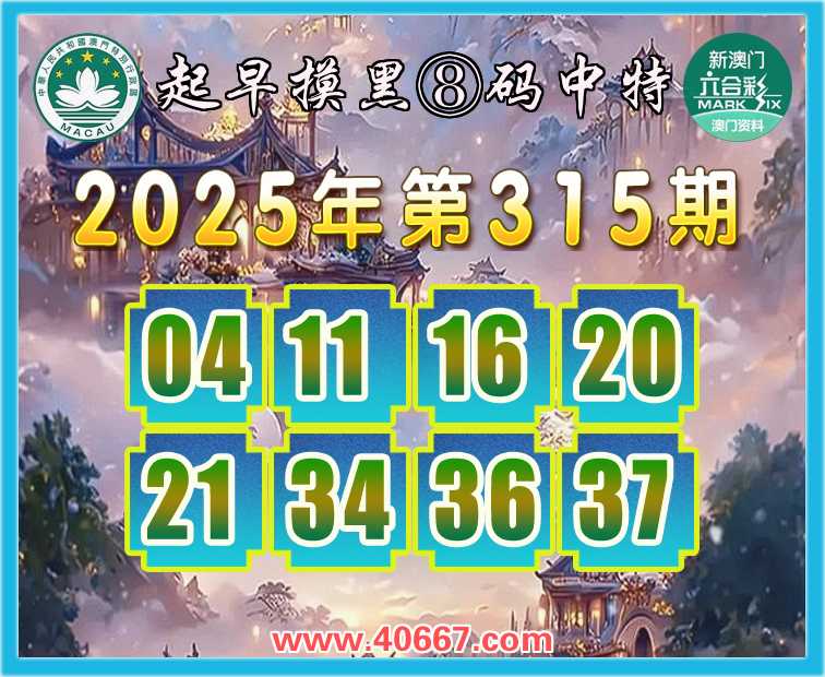 315期:〖起早摸黑〗 🥰⑧码中特🥰开:04