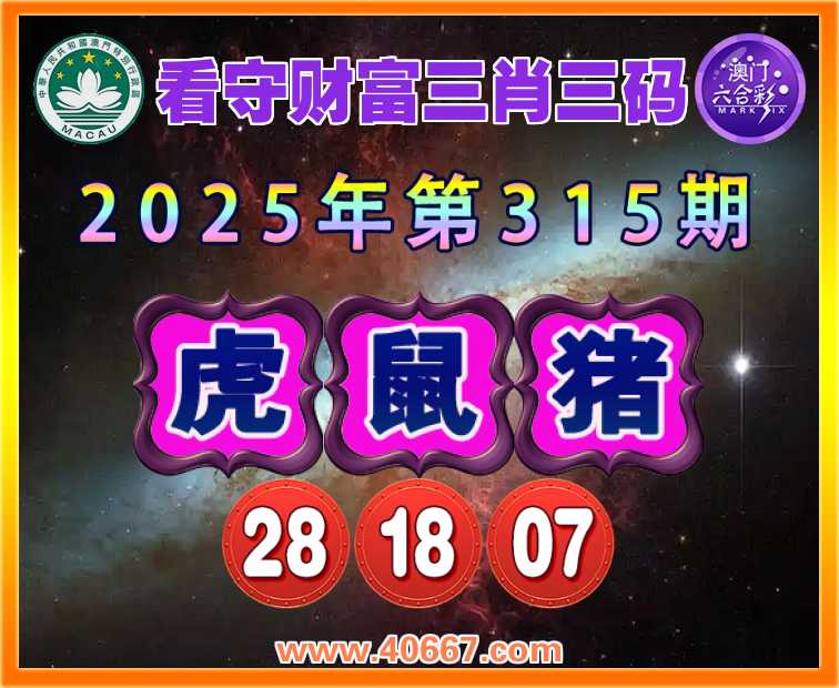 315期:『看守财富』 🎈三肖三码🎈【鼠猪】【28.18.07】开:虎04
