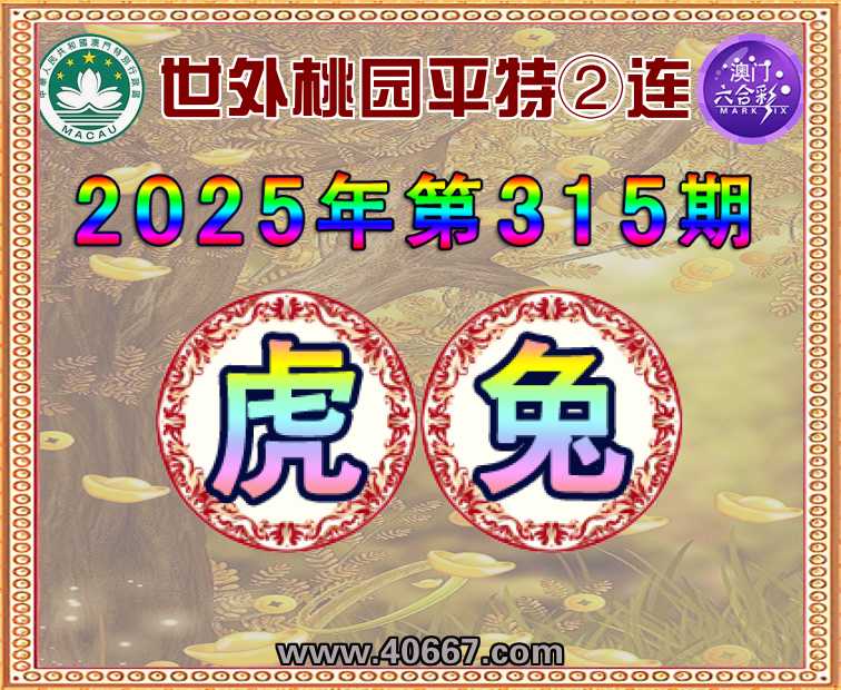 315期:【世外桃园】 🎉平特②连🎉【虎兔】开:虎04,兔15