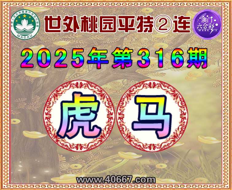 316期:【世外桃园】 🎉平特②连🎉【虎马】开:虎40,马24