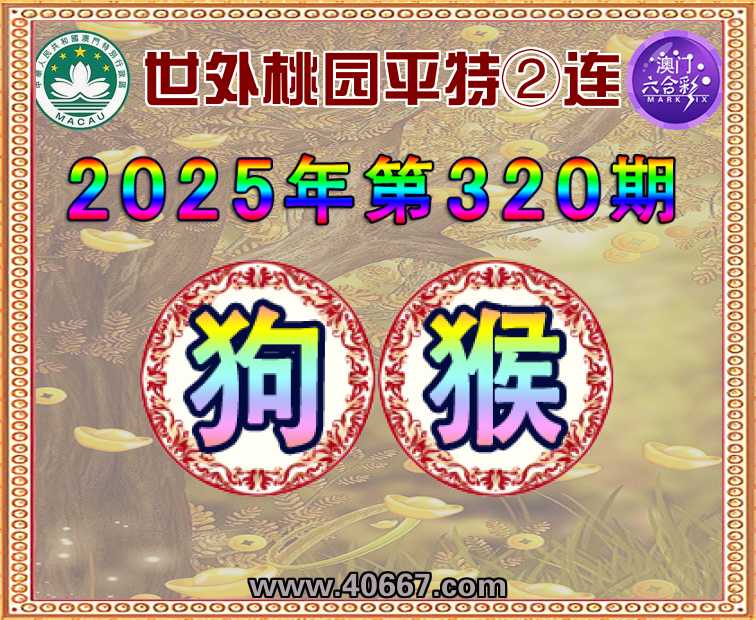 320期:【世外桃园】 🎉平特②连🎉【狗猴】开:狗20,猴34准上榜高手
