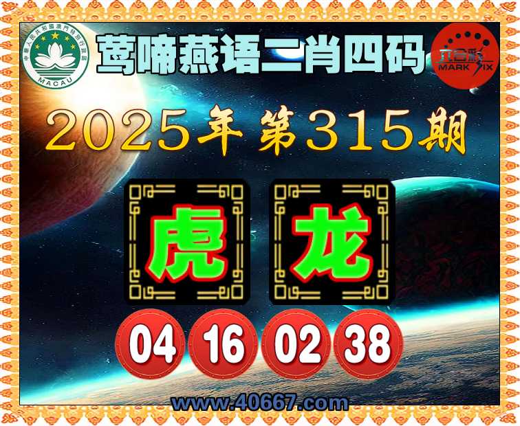 315期:『莺啼燕语』 🍅二肖四码🍅【龙】【04.16.02.38】开:虎04