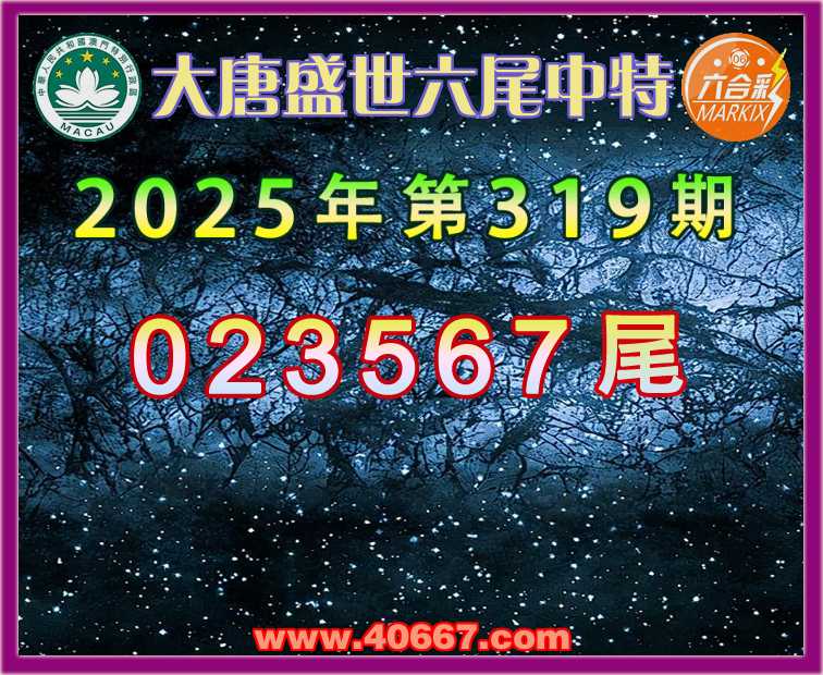 319期:〖大唐盛世〗 🍕六尾中特🍕【0.2.3.5.6.7】开:45